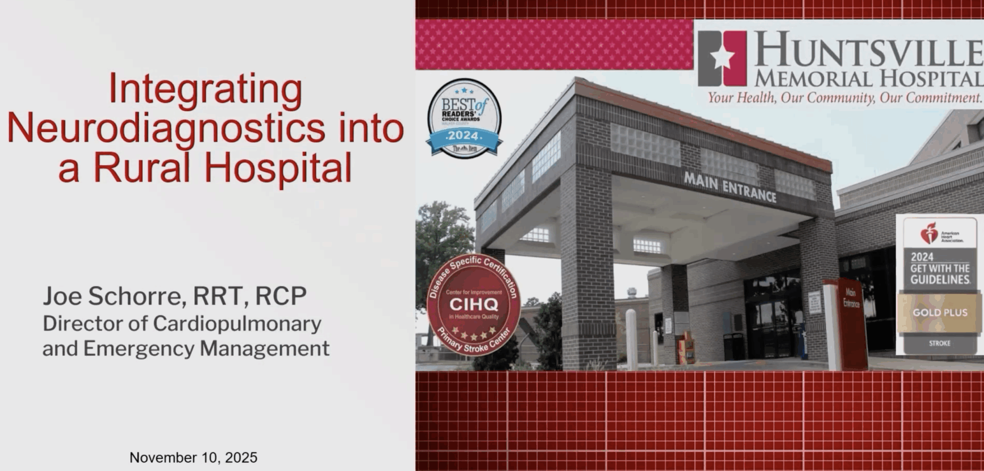 In this presentation from the American Heart Association’s Scientific Sessions, Joe Daniel Schorre, Director of Cardiopulmonary and Emergency Management at Huntsville Memorial Hospital in East Texas, shares how his team solved a major care gap: the complete absence of EEG services in their rural community.